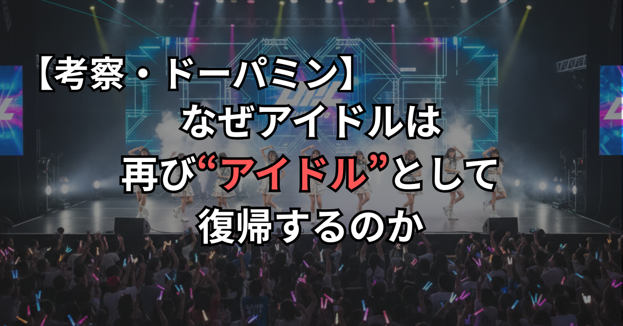 以上の考察から、アイドルが何度もステージに戻ってくる理由は、単なる未練ではなく「日常では味わえない快感を、もう一度繰り返したい」という脳の本能的な欲求にあると考えられます。